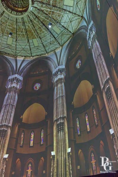 Die komplett mit Leinwänden ausgestatteten Wände ergeben 6.500 m² Projektionsfläche. 33 Hochleistungsprojektoren sorgen mit Lasertechnik für eine einzigartige Visualisierung jeglicher Themenwelten. Da kommt keine noch so große Leinwand in Kinosälen heran.