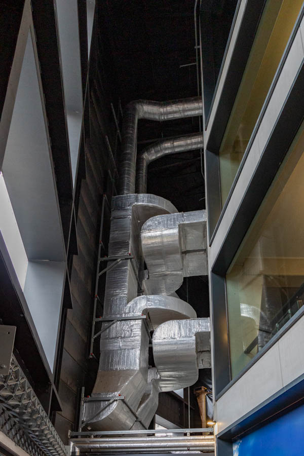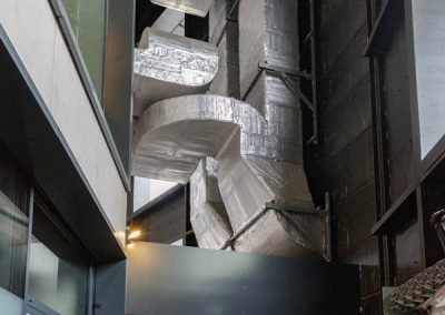 Die Herausforderung dabei; die Statik ließ nur eine 4×4 Meter große Öffnung innerhalb des Gaskessels zu. Nicht gerade viel Spielraum für eine Baustelle. Das zog die Frage nach sich, wie und wo sollte man den notwendigen Baukran aufstellen?