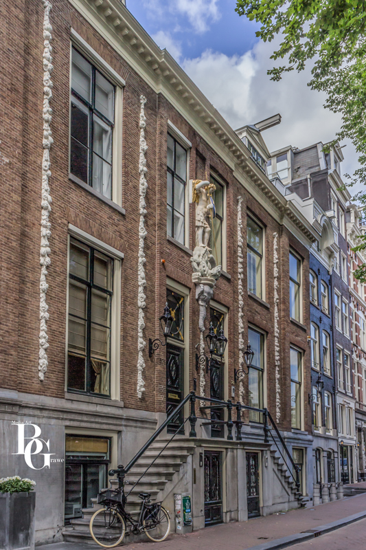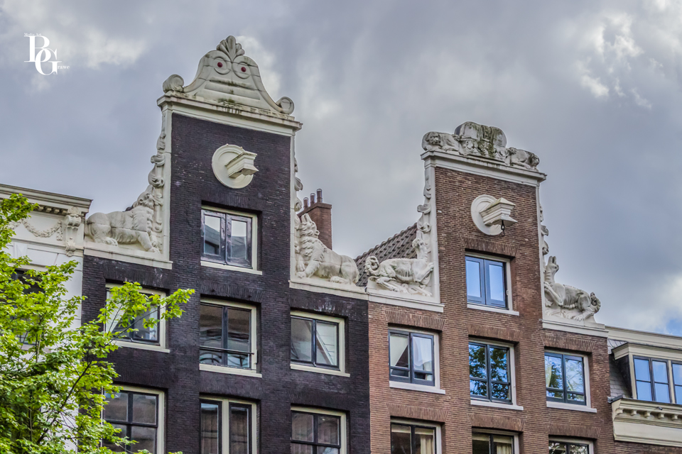 An vielen Fassaden kann man noch Giebelsteine entdecken. Ca. 2000 Stück soll es davon in Amsterdam geben. Dabei handelt es sich um Reliefs aus Stein, die meist bemalt sind. Die Darstellungen gaben Auskunft über die Bewohner und/oder deren Berufe.